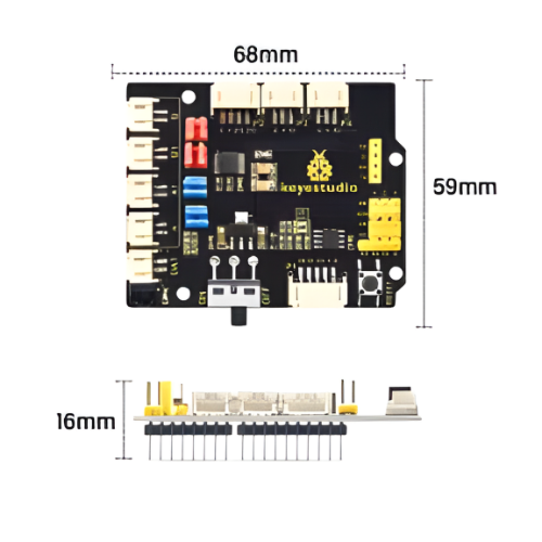 The Keyestudio 8833 Motor Driver Expansion Board is a versatile and compact control module designed for robotics and embedded system projects. Built around the efficient 8833 motor driver chip, this expansion board offers a powerful and flexible solution for controlling DC motors, servo motors, and integrating various sensors. It is especially suitable for educational purposes, DIY robotics, and smart automation systems