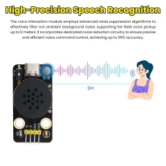 Perfect for STEM education, robotics, and automation, this module simplifies the development of voice-enabled devices such as smart assistants, voice-controlled robots, and home automation systems. Its compact and efficient design makes integration smooth in various DIY and professional setups, while delivering reliable real-time performance.