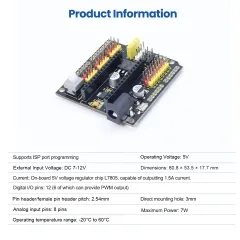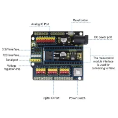 The Keyes Nano Expansion Board Compatible With Arduino Nano 3.0 / Nano 4.0 is a reliable and user-friendly accessory that enhances productivity and simplifies the development process for a wide range of electronics projects.