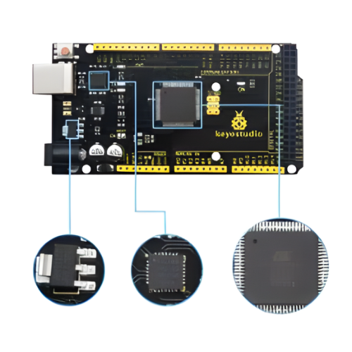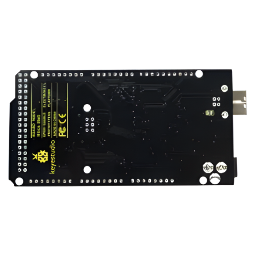 Keyestudio Mega 2560 R3 is a microcontroller board based on the ATMEGA2560-16AU , fully compatible with ARDUINO MEGA 2560 R3. It has 54 digital input/output pins (of which 15 can be used as PWM outputs), 16 analog inputs, 4 UARTs (hardware serial ports), a 16 MHz crystal oscillator, a USB connection, a power jack, 1 ICSP header, and a reset button. The built-in ICSP port can burn the firmware for ATMEGA2560-16AU directly. This chip is burnt the firmware well before leaving the factory, therefore, we hardly use it. We can power on by USB wire, DC head and Vin GND pins. To facilitate wiring, a 0.5 m USB wire is provided for you.