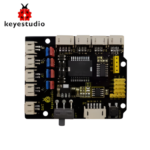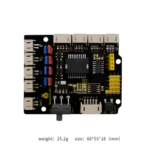 For simple wiring, the motor driver shield comes with anti-reverse interfaces. When connecting the motor, power supply and sensor modules, you just need to plug in directly.