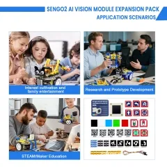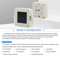 The Keyestudio Sengo2 Smart AI Vision Card Maker Extension Kit (Sentry2 Go Kit) is an advanced and interactive solution designed for AI vision learning, object recognition, and smart automation projects. Built for developers, educators, and tech enthusiasts, this kit enables real-time image recognition and intelligent detection capabilities, making it ideal for STEM education, robotics, and AI-based innovations. With its compact design and powerful processing, it simplifies complex vision-based tasks into an easy-to-use platform, allowing users to create smart applications without deep expertise in artificial intelligence.