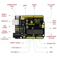 keyestudio UNO compatible board Advanced is a microcontroller board based on the ATmega328P  fully compatible with keyestudio UNO R3 board and ARDUINO UNO REV3.