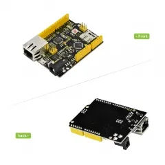 Onboard comes with W5500 network module,which can make Arduino as simple Web server or read Arduino digital and analog interface via network control. It can achieve a simple Web server through using Ethernet libraries in IDE, meanwhile, support MicroSD card (TF card) read and write, really with powerful functions.