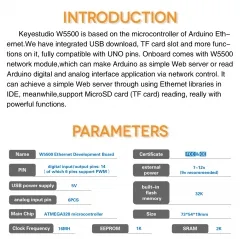 Keyestudio W5500 is based on the microcontroller of Arduino Ethernet.We have integrated USB download, TF card slot and more functions on it, fully compatible with UNO pins.