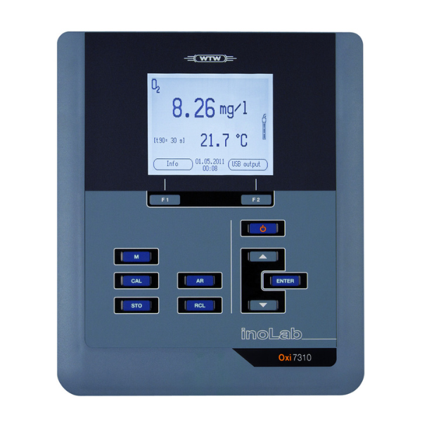Reliable Documentation for dissolved oxygen measurement, if desired also available with built-in printer. This is the inoLab® Oxi 7310 or inoLab® Oxi 7310P. A modern backlit graphic display with menu controlled user interface allows easy and intuitive operation. The mini USB-B interface provides fast data transfer to a PC. The internal memory can record up to 5000 GLP complying data including ID, date and time. The housing and the keypad are easy-to-clean.