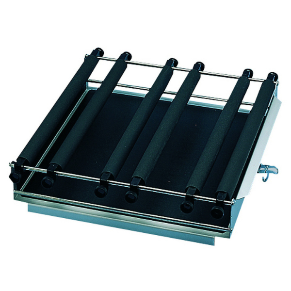 For a variety of vessels (flasks, beakers etc.) with volumes of at least 50 ml (ideally greater than 250 ml). With tension rollers that can be mounted on 2 levels.